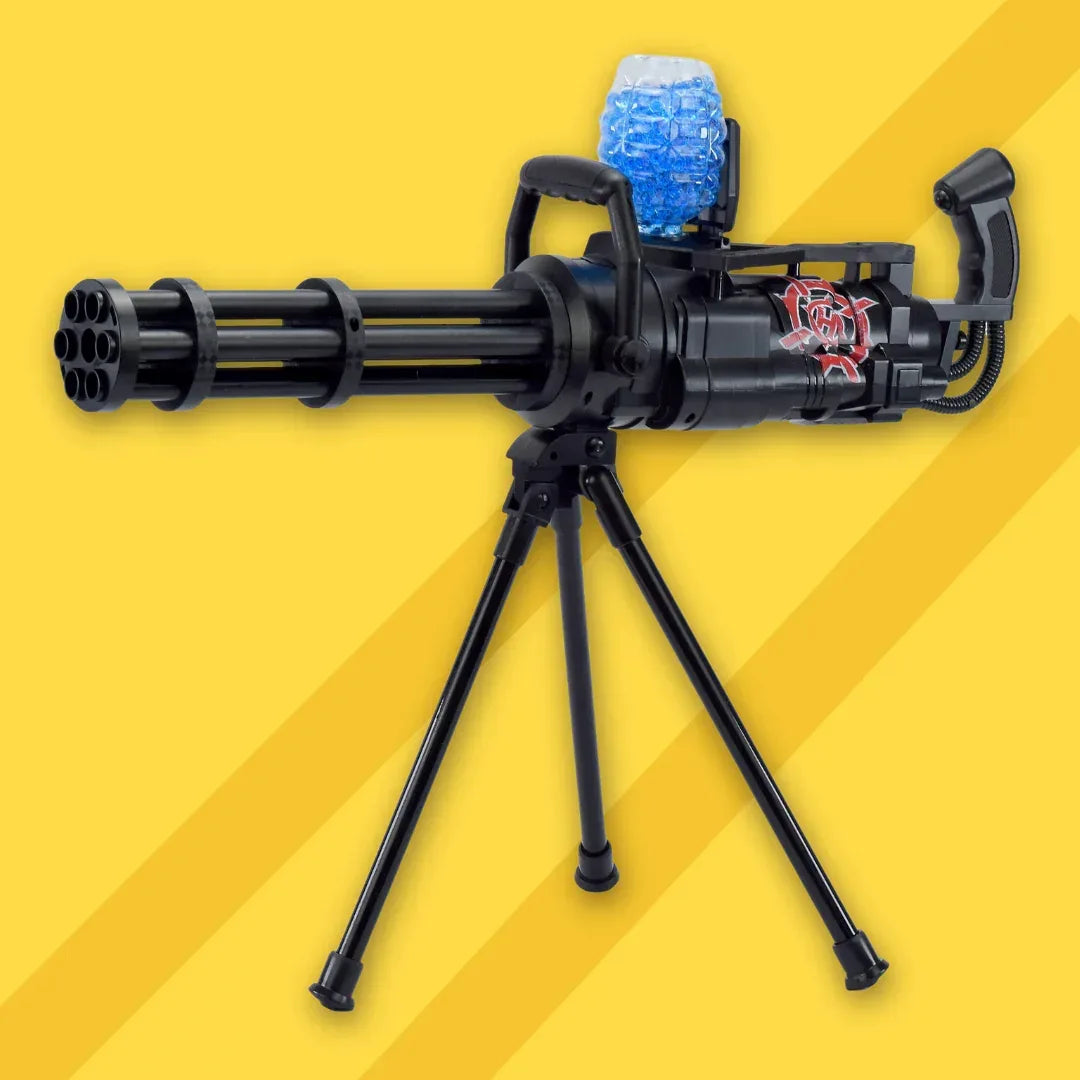 Používá bezpečné gelové kuličky (7–8 mm), které jsou biologicky rozložitelné, nešpiní a po zásahu se rozpadají. Robustní konstrukce z odolného ABS plastu, odnímatelná skládací dvojnožka a granátový zásobník dělají z tohoto kulometu ideální zbraň pro velké bitvy na zahradě i na otevřeném prostoru.